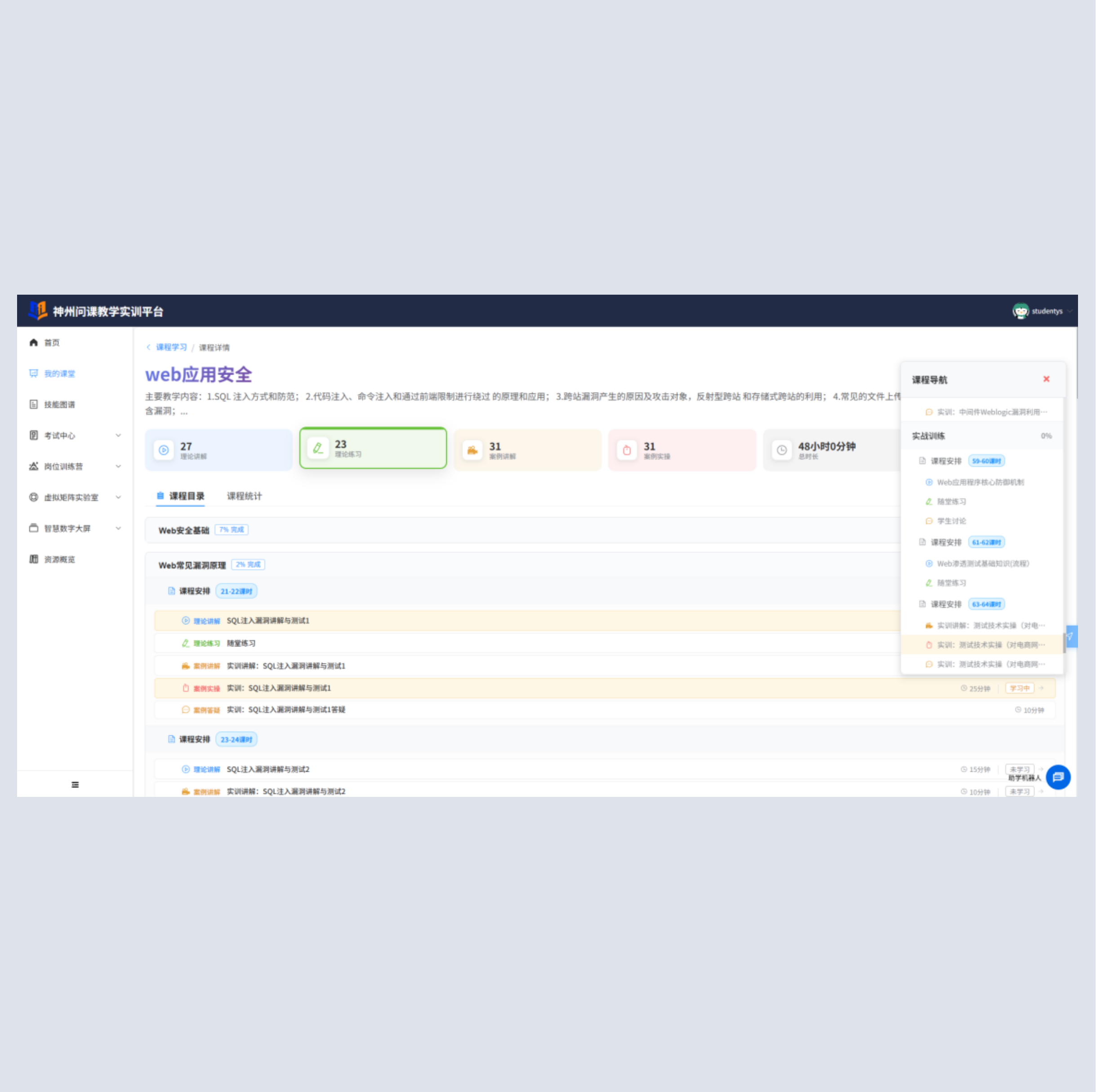 瓦力游戏官网问课教学实训平台是一款深度聚焦中高职院校及应用型本科计算机相关专业的全流程在线学习、实训与测评一体化平台。平台以培养网络技术、信息安全、软件开发、大数据、人工智能等新一代信息技术领域的高素质岗位人才为核心目标,全面引入与各行业岗位直接对接的全套专业课程体系与岗位实战课程,精准匹配企业对技能型人才的核心要求。